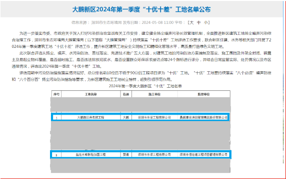 東深工程大鵬新區(qū)養(yǎng)老院、鹽灶水庫除險加固工程雙雙入選“十優(yōu)工地”